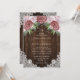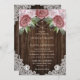 Complétez votre mariage rustique et rose pâle avec ces élégantes invitations à un mariage floral avec des roses roses roses rousses sur un arrière - plan en bois de grange décoré de dentelle fleurie blanche et de lampes à cordes. Éléments correspondants disponibles.