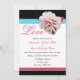 Belle fleur fuchsia sur un élégant design d'invitation rose, bleu aqua et noir.