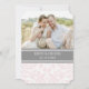 Cartes modèle photo personnalisées faire-part de mariage dans élégant et contemporain gris fusain foncé, rose pastel clair clair et blanc classique et chic floral damassé motif vintage. Customisez ces invitations avec vos coordonnées de mariage et votre propre photo. Disponible en produits assortis pour tous vos besoins mariages.