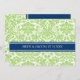 Cartes de faire-part de mariage dans élégant et contemporain vert pomme, bleu marine foncé, blanc classique et chic floral damassé vintage motif. Customisez ces invitations avec vos coordonnées de mariage. Disponible en produits assortis pour tous vos besoins mariages.