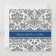 Cartes de Faire-part de mariage en gris fusain foncé élégant et contemporain, bleu marine foncé, blanc classique et chic damas fleuris motif vintage. Customisez ces invitations avec vos coordonnées mariages. Disponible dans des produits assortis pour tous vos besoins mariages.