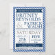 Invitations de mariage marine bleue, blanche et grise - faites correspondre les invitations et d'autres informations ci-dessous. Ces invitations modernes ont une bande marine bleue et blanche en arrière. Le côté texte présente des séparateurs de lignes et de zones de texte bleu marine. Chaque invitation est accompagnée d'une enveloppe blanche.
