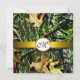 Chasse au monogramme en or Invitations au mariage en camo : Elles sont décorées de feuilles, d'écorce, de brindilles dans des tons verts, gris et marron. L'avant est ornée d'une bande imprimée en or avec un sceau monogramme que vous pouvez customiser à l'dernière initiale du marié. L'arrière présente la même conception avec une zone de texte qui permet de faire passer le contour autour de la bande imprimée au maximum.