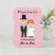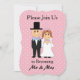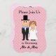 Adorable invitation de mariage simple mais mignonne rose et blanc "pois pointillés" avec une mariée de dessin animé et marié sur le devant. Au verso, vous pouvez modifier toutes les informations de votre mariage dans la zone personnaliser.