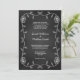 Invitations de mariage rustiques en tableau noir avec bordure de tournesols et de vignes, sur un arrière - plan en tableau noir. Une jolie image de craie dessinée à la main est parfaite pour votre mariage à thème rustique. Obtenez les cartes RSVP de mariage du tableau noir correspondantes.