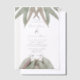 Ce design présente des feuilles d'eucalyptus rustiques. La verdure d'eucalyptus est complétée par une élégante typographie noire. Les tons verts poussiéreux de la feuille d'eucalyptus créent une atmosphère rustique de jardin boisé de campagne. L'envers imite la conception simple d'eucalyptus de l'avant. Design élégant d'invitation de mariage avec des éléments modernes. Des articles de papeterie mariage correspondants et d'autres formats d'invitation de mariage sont également disponibles.