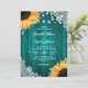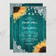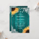 Turquoises invitations de mariage florales rustiques inspirées des tournesols, bois rustique, burlap et dentelle.