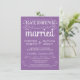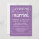 Mangez, buvez, et soyez mariés — invitations à des mariages campagnards rustiques de style Vintage — parchemins Tourbillonnant, bouclés et typographie à l'ancienne sur un joyeux arrière - plan de burlap violet d'orchidées radieuses et radieuses. Ajoutez vos noms et informations mariages dans ce modèle facile à utiliser. Élégant mais amusant et fantaisiste, l'écriture de script de style tableau de bord peut être modifiée pour votre thème rétro rétro ou formel mariage. Le style moderne Décontracté est parfait pour les mariages contemporains branchés avec une touche amusante de charme sophistiqué pour les mariés et mariés traditionnels. Veuillez nous contacter pour obtenir de l'aide sur la personnalisation si vous avez besoin d'espace supplémentaire pour vos détails mariages. Autres formats et styles de tableau de bord disponibles.