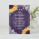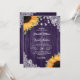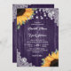 Invitations de mariage à fleurs violettes et rustiques inspirées des tournesols, du bois rustique, du burlap et de la dentelle.