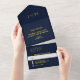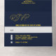 Nos Elégantes Invitations de Mariage Tout en Un sont l'introduction parfaite à notre histoire d'amour, avec un arrière - plan bleu foncé intemporel et un texte or exquis. Cette invitation tout-en-un dévoile les détails de notre journée spéciale de manière luxueuse et élégante. L'arrière - plan bleu foncé symbolise la profondeur de notre amour, tandis que le texte doré ajoute une touche d'opulence et de sophistication. C'est une combinaison qui signifie la richesse de notre voyage ensemble. Dans cette invitation tout-en-un, nous avons soigneusement inclus toutes les informations essentielles dont nos invités ont besoin pour se joindre à nous le jour de notre mariage. Des détails de la cérémonie et de la réception aux options d'hébergement et aux instructions du RSVP, chaque aspect est minutieusement présenté. Notre histoire d'amour est au centre de cette invitation. Nous avons inclus un message personnalisé qui reflète notre voyage unique et donne le ton de notre célébration. C'est un témoignage de l'amour et de l'engagement que nous partageons. Grâce à la carte RSVP, vous pourrez répondre facilement et planifier votre présence lors de notre journée spéciale. Le design tout-en-un simplifie non seulement le processus d'invitation, mais met également en valeur notre souci du détail et notre engagement à créer une expérience mémorable pour nos clients. Avec son élégant arrière - plan bleu foncé et son texte doré, cette faire-part de mariage tout-en-un est une oeuvre d'art, préparant le terrain pour une journée de mariage remplie d'amour, de joie et de moments inoubliables. Nous invitations nos proches à se joindre à nous pour échanger des voeux et entreprendre ensemble ce beau voyage. Nos Elégantes Invitations de Mariage Tout-en-Un sont le reflet de notre histoire d'amour, et nous sommes impatients de la partager avec vous tous.