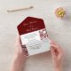 All in One Wedding invitations et RSVP élégant et amusant Maroon-Bourgogne et blanc Inclut les détails de la faire-part de mariage et la confirmation billet de retour RSVP. Tous les détails peuvent être personnalisés et, vous pouvez écrire vos adresses d'invités au verso de l'invitation, ou acheter les autocollants de étiquette de adresse d'invités coordonnateurs Si vous souhaitez placer l'invitation dans une enveloppe, vous pouvez joindre une enveloppe correspondante de notre collection : "Elegant Maroon Open-work | papeterie Mariage" qui est hautement recommandé! Nous espérons que vous, vos familles et vos amis l'aimerez et l'aimerez 🌸