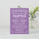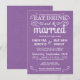 Mangez, buvez, et soyez mariés — invitations à des mariages campagnards rustiques de style Vintage — parchemins Tourbillonnant, bouclés et typographie de la vieille coutume en blanc rayonnant sur arrière - plan de burlap violet d'orchidées de lavande. Ajoutez les noms de mariée et de mariée et les informations mariages dans ce modèle facile à utiliser. La calligraphie élégante, mais amusante et fantaisiste, de type tableau noir rétro peut être modifiée pour votre thème mariage formel ou semi-formel. Le style moderne Décontracté convient parfaitement aux mariages contemporains branchés avec une touche de charme sophistiquée pour les couples traditionnels. Veuillez nous contacter pour obtenir de l'aide sur la personnalisation si vous avez besoin d'espace supplémentaire pour vos détails mariages.IMPORTANT : Affiché sur 4,5 x 6,25 cartes d'invitation de petite taille. Autres tailles et styles disponibles.