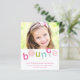 Une invitation à la fête anniversaire de enfant moderne avec une typographie de rebond colorée et l'âge et la photo personnalisés. Cliquez sur le bouton Modifier pour customiser cette conception.