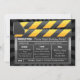 L'invitation à la fête du clap clap du cinéaste est idéale pour une soirée de cinéma, une nouvelle projection de film, une soirée de vedettes de cinéma pour filles, une fête d'anniversaires de enfants ou tout autre rassemblement social centré autour de hollywood et l'industrie de la production cinématographique. Invitations personnalisées de soirée de cinéma, en noir, blanc, jaune. Rayons de lumière noir et blanc dans l'arrière - plan Personnaliser le tableau de craie du carton avec vos infos de fête. Faites une grande invitation unique pour le garçon d'anniversaire, la fille, ou toute occasion!