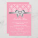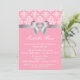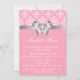 Une élégante invitation à la première communion damassée avec un ruban argenté et un arc décoré d'une croix. Montré en rose, argent et blanc. Chic et classe. Modifiez facilement les couleurs de l'arrière - plan et de la police ou repositionnez le damask pour permettre plus de texte.