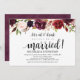Cette carte d'invitation sur le thème floral de Bourgogne rustique est parfaite pour votre réception de mariage / célébration de fête. Ajoutez vos coordonnées avec une police / lettrage noir assorti.