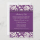 Invitations élégantes de renouvellement de voeu de mariage dans pourpre d'aubergine et outre blanc du motif floral crème foncé de damassé avec le texte entièrement personnalisable d'inclure vos détails de cérémonie de renouvellement de voeu.