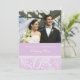 Élégantes invitations photo de renouvellement de voeux de mariage dans d'élégants tourbillons fleuris pastel violet et blanc motif avec texte entièrement personnalisable pour inclure vos détails de la cérémonie de renouvellement de voeux et de l'espace pour ajouter votre propre photo. Disponible dans de nombreux produits de soirée correspondants pour votre renouvellement de voeux.