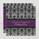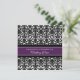 Élégantes invitations au renouvellement de voeux de mariage dans un motif de damas floral noir, violet foncé et blanc d'aubergines avec texte entièrement personnalisable pour inclure les détails de votre cérémonie de renouvellement de voeux.