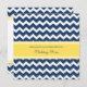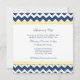 Elégantes invitations à renouveler vos voeux de mariage en bleu marine foncé, jaune citron et blanc éclatant et bandes rétro chevron zigzag motif avec texte entièrement personnalisable pour inclure vos détails de la cérémonie de renouvellement de voeux.