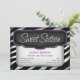 Invitations d'anniversaire "Puffy" aux accents de design violet et argent. #zebraprint #sweetseize