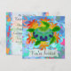 Cartes d'invitation recto verso personnalisées. Front a personnalisable "Vous êtes invité". Dos contient des informations sur l'invitation: entrez le titre de votre événement, la date, l'heure, l'emplacement et un message personnel. Une numériquement tortue de mer peinte en vert avec une coque à motifs contre un arrière - plan de varech orange comme des flammes.