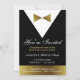 Invitations en tuxedo noir et or pour votre dîner officiel ou événement spécial formel! Elégant et minimaliste dans le style design, cette invitation tux personnalisée apportera une touche classe... L'illustration sur le devant représente le costume tux formel d'un homme, et la barre d'accentuation inférieure peut être facilement effacée si vous préférez plus d'espace noir pour votre texte personnalisé. Vous pouvez également supprimer les graphiques en or du modèle pour pouvoir modifier la couleur de la cravate de l'arc avec le sélecteur de arrière - plan. Sur le dos de ces cartes se trouve une "petite robe noire" pour les dames et un chapelet de perles.Couleurs: noir, or, or, blanc.Catégorie: formelles, dîners, cravate noire.