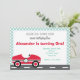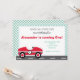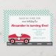 Invitation à l'anniversaire de la Race Car pour les garçons en turquoise et rouge.