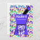 Invitations d'obtention du diplôme de pharmacie d'amusement, meds tirés par la main d'artiste avec le pilon du style 3D et mortier sur l'arrière - plan bleu avec le lettrage noir. "Classe 2012 de Pharm-D". Personnalisable sur l'avant et le dos.