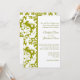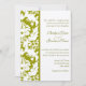 Si vous préférez supprimer l'esperluette (&) plus grande et en utiliser une plus petite, cliquez simplement sur modifier/customiser/plus en bas de l'outil déroulant/pop-up "Personnaliser ce modèle" pour entrer dans l'outil de conception. Sélectionnez la grande esperluette et faites plus petite et faites glisser pour positionner ou supprimer, puis modifiez le nom de la mariée pour inclure l'esperluette. De plus, les couleurs arrière - plans (couleur de carte) et les couleurs de police peuvent également être modifiées dans n'importe quelle couleur personnalisée correspondant à vos couleurs Mariages en utilisant n'importe quelle combinaison de couleurs. Invitations d'Olive Mariage damassé