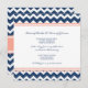 Invitations à la fête d'engagement dans l'élégant bleu marine foncé, pêche orange rose et blanc fun et rétro chevron zigzags raypes motif. Entièrement personnalisable avec les détails de votre fiançailles. Également disponible dans une large gamme de produits mariages assortis.
