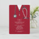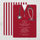 Invitations de la fête de remise des diplômes de l'école de médecine créative avec gommages rouges à l'hôpital et art stéthoscope. Modifier le texte pour créer une invitation unique de la fête du médecin.