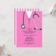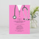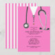 Invitations de la fête de remise de diplômes créatifs, avec gommages et stéthoscope à l'hôpital rose. Modifiez le texte pour créer une invitation unique de la fête du médecin ou de la faire-part d'études de médecine.