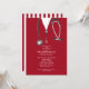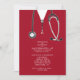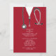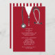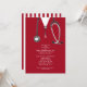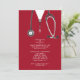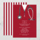 Invitations de la fête de remise des diplômes de l'école de médecine créative mettant en vedette des gommages rouges et du stéthoscope. Modifiez le texte pour créer une invitation unique pour un médecin.