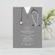 Invitations de la fête de remise de diplômes de l'école de médecine créative mettant en vedette des gommes d'hôpital et de l'art stéthoscope. Modifier le texte pour créer une invitation de groupe de médecin unique ou faire-part de diplômé de l'école de médecine.