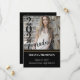 Invitations à la fête de remise des diplômes avec photo du diplômé sur le devant avec leur année de remise des diplômes en gras sur le côté gauche de leur photo. Infos sur le dos des invitations avec texte en blanc sur un arrière - plan noir. Éditez cette invitation avec vos propres détails et faites de vos diplômés la fête d'une nuit à retenir.