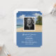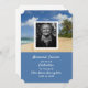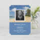 Une belle carte avec une plage océanique d'été et des palmiers scène derrière un cadre blanc pour vous d'ajouter une photo du défunt à et si facile à customiser avec vos propres détails personnels d'un funérailles / service commémoratif sans frais supplémentaires.