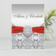 Élégant diamant argent et faire-part de mariage rouge.