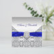 Élégant diamant argent et faire-part de mariage bleu royal.