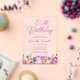 Une jolie frontière fleur sauvage décore le fond de cette invitation pour 100e anniversaire adulte. Les fleurs violettes, bleues, jaunes et oranges créent un design coloré et heureux pour célébrer cet anniversaire marquant. La calligraphie violette moderne et simple ajoute une touche tendance pour la garder fraîche. Le flux de lettrage ouvert et insouciant se coordonne parfaitement avec les marguerites et les papillons. Cette invitation du 100e anniversaire donnera le ton parfait, lorsque vos invités le recevront. Un choix enchanteur pour une fête d'anniversaire de printemps ou d'été. Cet article fait partie de la collection de Fleurs sauvages de couleur violet. Utilisez-le pour créer facilement la suite d'invitation parfaite 100e anniversaire et le thème de fête.