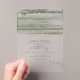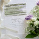 Une peinture à l'aquarelle dans les tons étincelants de vert olive avec des éclaboussures de lavande accentue les pièces de cette belle suite mariage. Le faire-part de mariage acrylique transparent présenté ici présente également une calligraphie manuscrite élégante et un modèle pour ajouter facilement vos propres noms et détails de l'événement. Recherchez ID886 pour voir d'autres pièces et choix de couleurs pour cet ensemble.