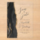 Le bord gauche de cet élégant mariage moderne, sauf la carte de date, est doté d'une bordure en aquarelle noire taillée avec une fausse parties scintillant dorée. Le texte personnalisable combine écriture manuscrite grise au fusain, copperplate et polices italiques sur un arrière - plan clair.