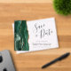 Cette élégante carte de datation moderne comporte une bordure en aquarelle vert émeraude, parée de parties scintillant en faux or. Le texte personnalisable combine écriture manuscrite, copperplate et polices italiques en gris fusain sur un arrière - plan clair.