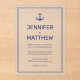Invitation vos invités mariages dans le style avec cette faire-part de mariage acrylique gelée à thème nautique avec une ancre bleu marine en haut avec vos détails mariages dans la typographie de script simple moderne pour vous de personnaliser avec un cadre bleu mince. Meilleurs voeux pour votre mariage et mariage ! Conçu par Susan Coffey.