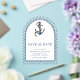 Éblouissez vos invités avec ce thème nautique élégant enregistrer la date avec une belle ancre et la typographie moderne. Ajoutez simplement les détails de votre événement sur ce modèle facile à utiliser pour en faire une carte unique de sauvegarde de la date.