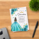 Invitations En Acrylique Aqua Blue Floral Robe Papillon Or Quinceanera