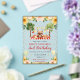 Aquarelle Cute Woodland Ours décoration pique-nique avec fleurs jaunes et beiges, bordures d'or et confetti parties scintillant or avec rayures rouges arrière - plan