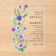 Aquarelle fleur sauvage arrangement floral mariage Acrylique Invitation. Ce faire-part de mariage à l'aquarelle étonnante design floral fleur sauvage est idéal pour une fête de printemps ou d'été. L'oeuvre présente un agencement vibrant de fleurs sur le côté gauche, dans des teintes douces de bleu et de violet, complétées par de délicats feuilles bleutés-verts qui apportent une touche de fraîcheur. L'esthétique globale capte l'essence de la beauté de la nature, créant une atmosphère accueillante et élégante qui enchantera les invités en anticipant l'occasion joyeuse.