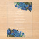 Un design moderne, floral bleu et verdoyant. Un design élégant en acrylique clair avec des illustrations de fleurs bleues, un script moderne et élégant et la typographie calligraphique contemporaine. Un design de faire-part de mariage acrylique clair unique qui peut être customisé à vos détails.