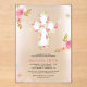 Éblouissez vos invités avec cet élégant invitation baptisé avec de belles fleurs roses et une élégante croix blanche. Ajoutez simplement les détails de votre événement sur ce modèle facile à utiliser pour en faire une invitation unique.